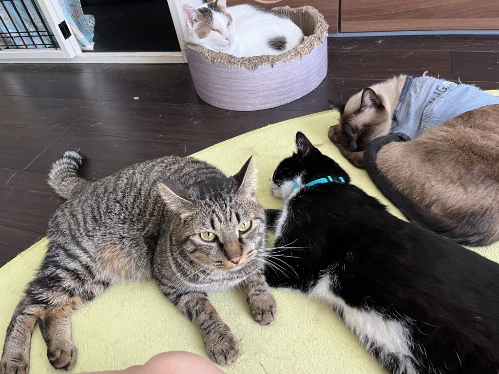 でも、そこから「ダンダン」は我が家の子になりました。先住猫たちが人に甘える姿を見て、